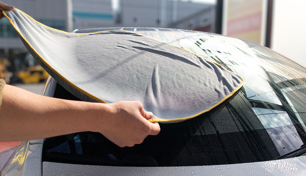 Premium microfiber drying towel with twist structure for quick and easy removal of water.