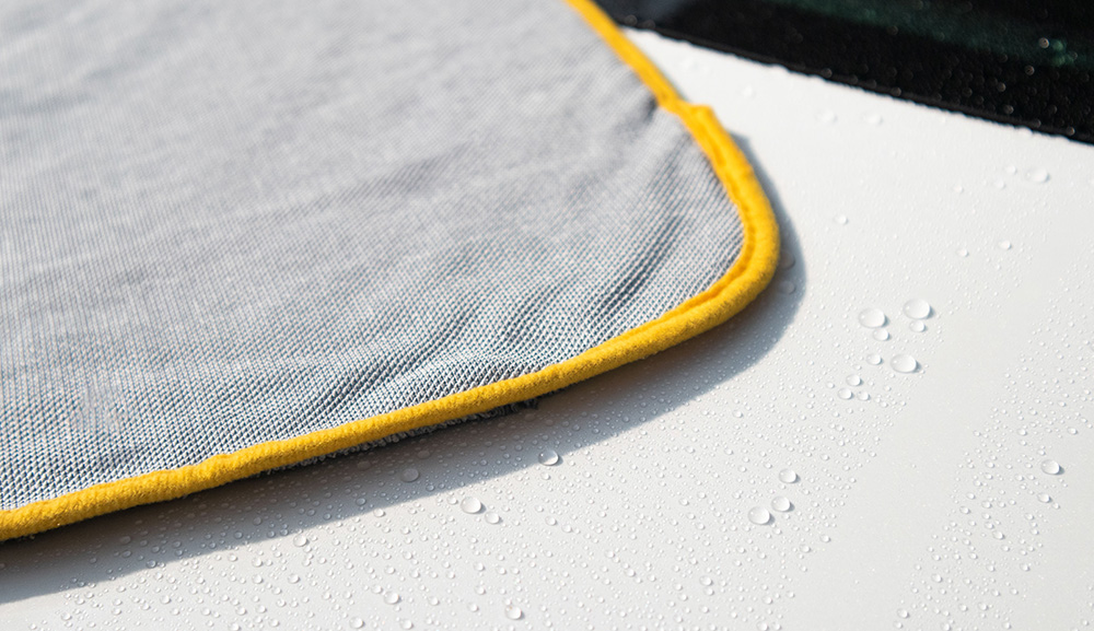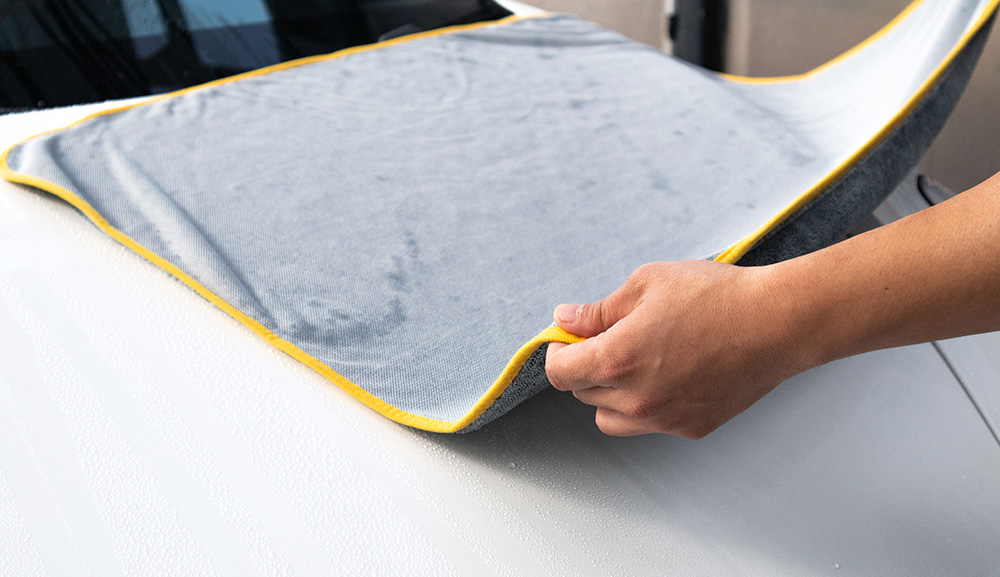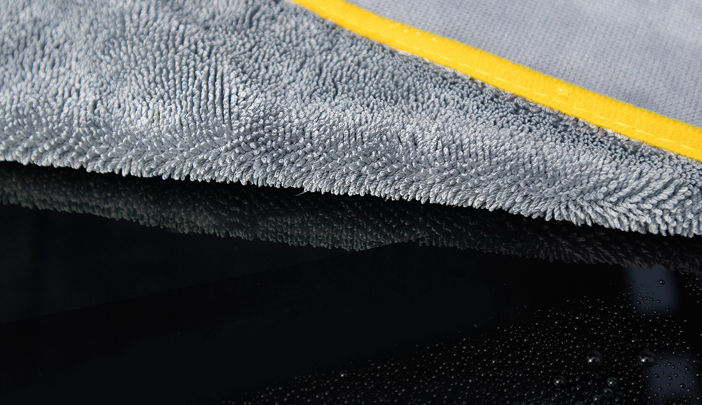 Premium microfiber drying towel with twist structure for quick and easy removal of water.