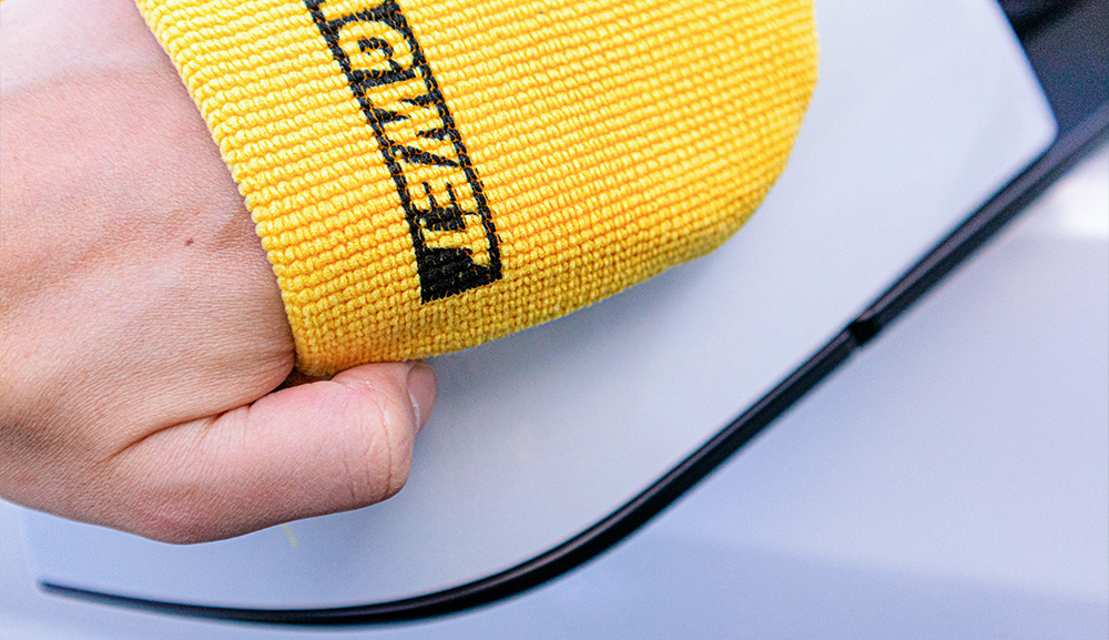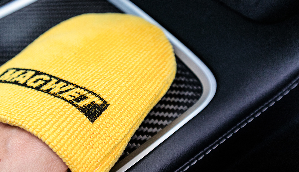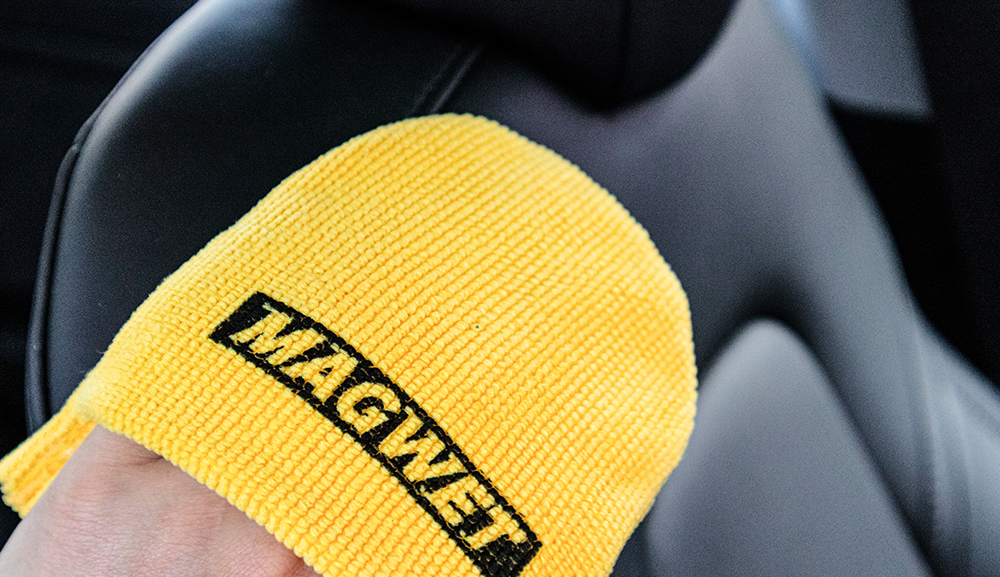Multi-purpose car indoor and outdoor microfiber applicator with built-in waterproof pad to prevent hand contamination.
