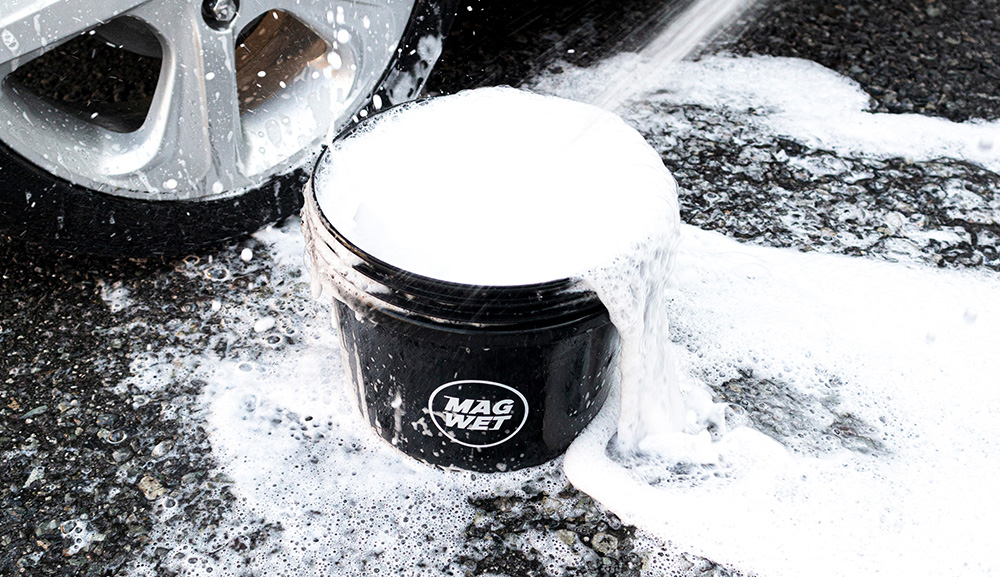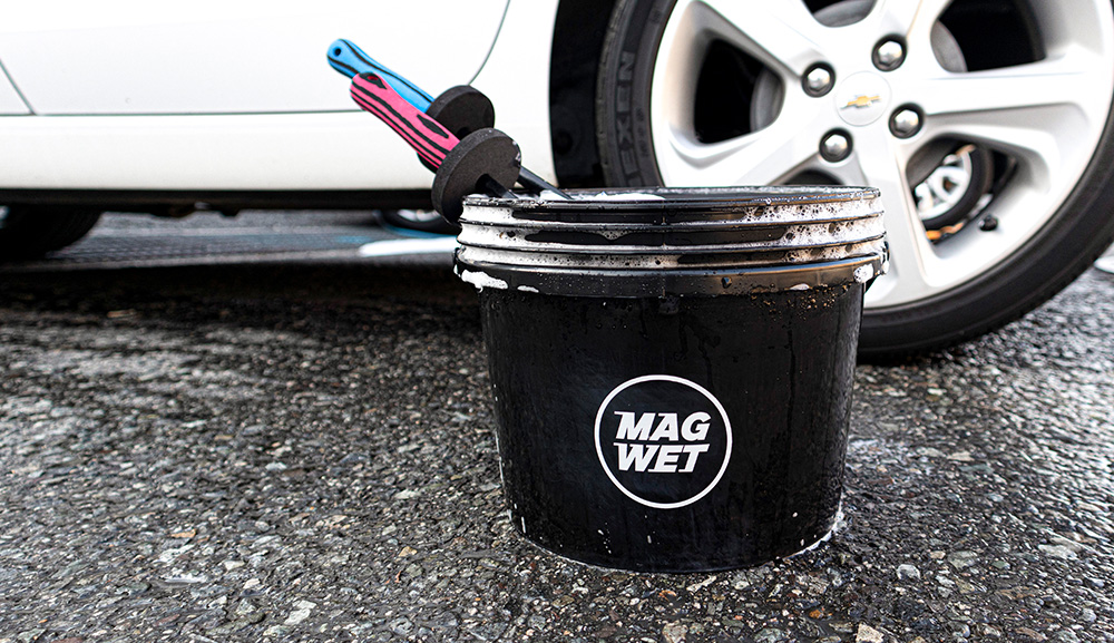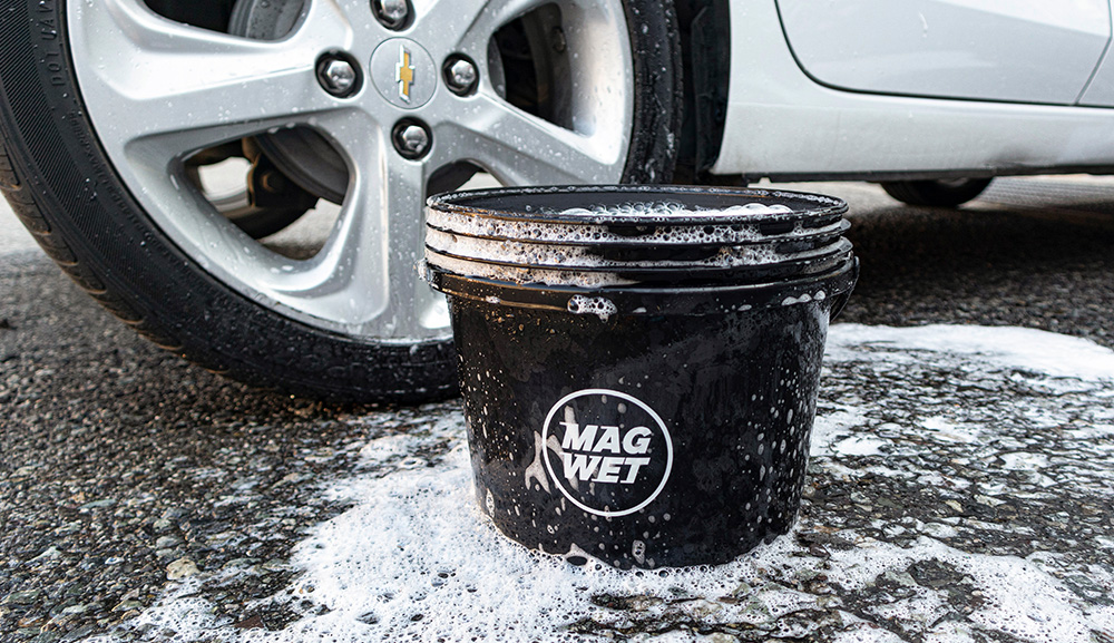 Dedicated bucket to fill the right amount of water when cleaning the car wheel.