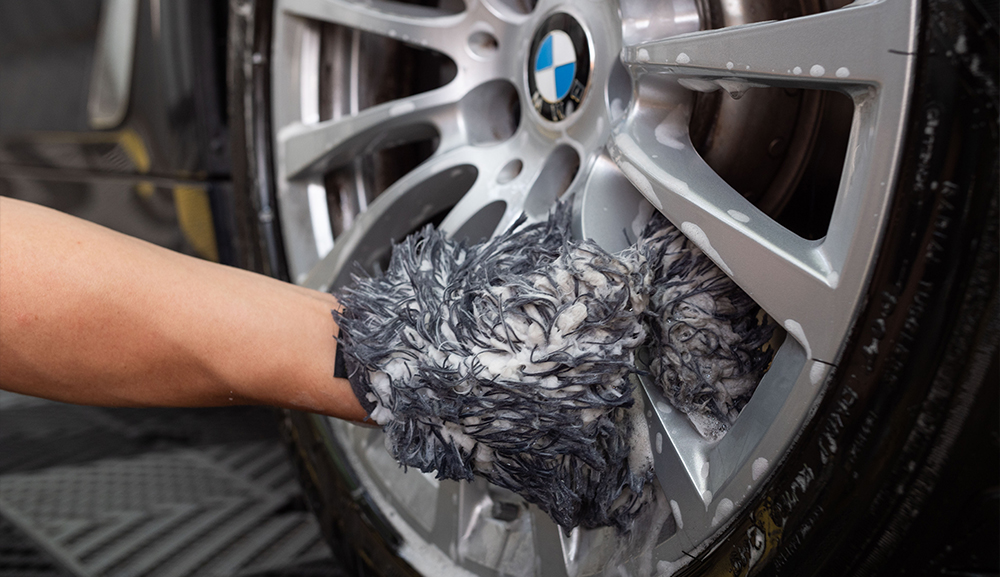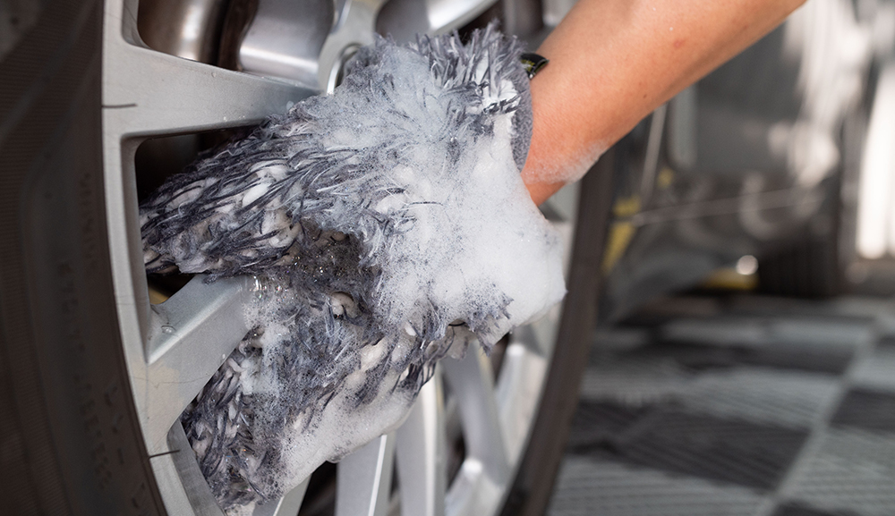 Dedicated gloves for easy removal of dust or dirt from car wheels.